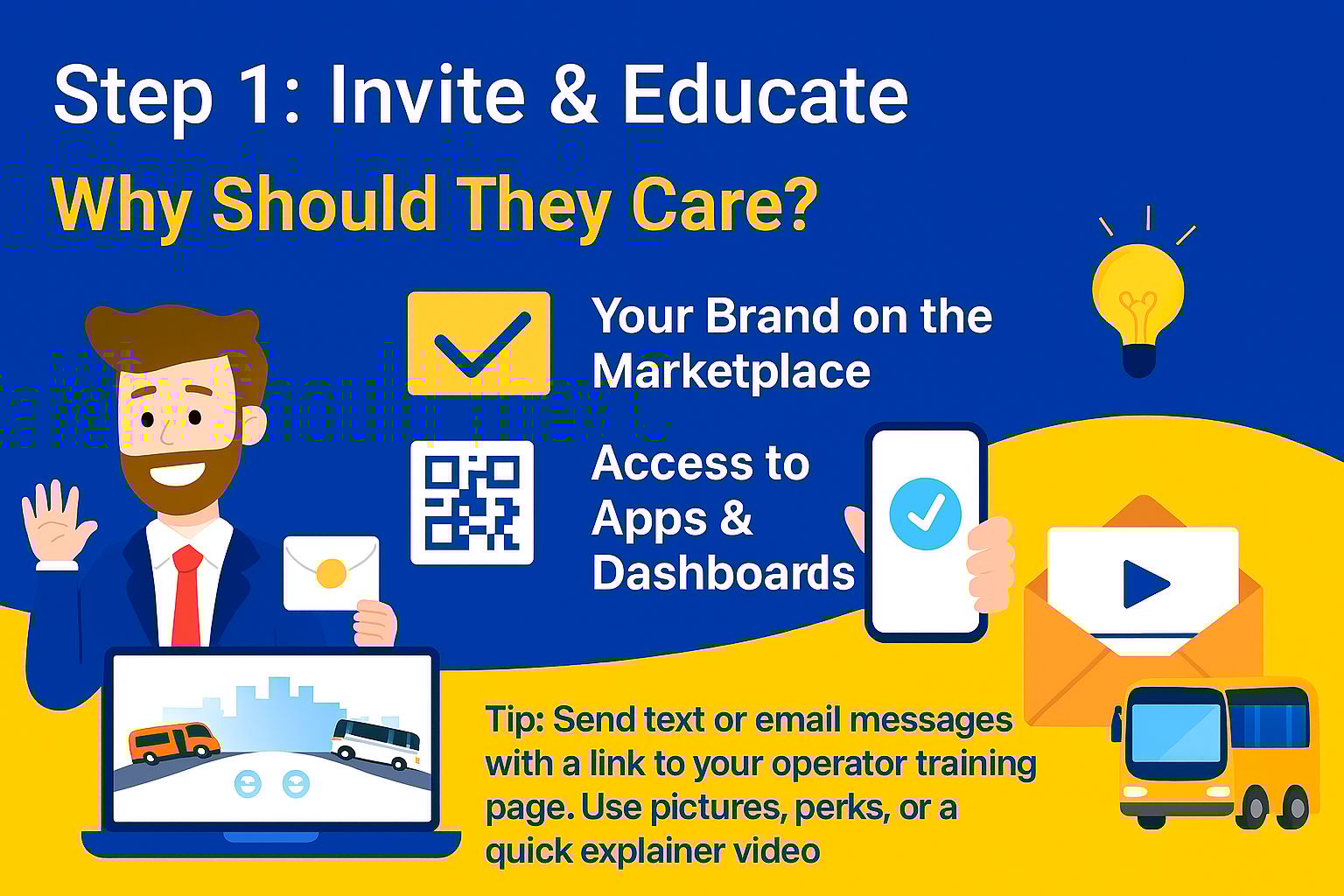 Tip: Send out text messages or emails with a link to your operator's training page. Incorporate images, perks, and a short movie that explains things.
